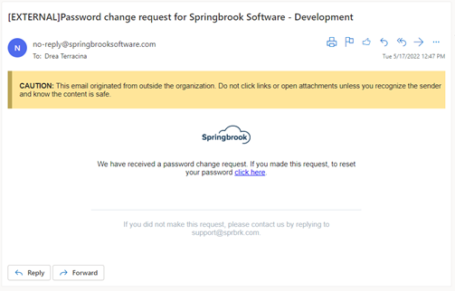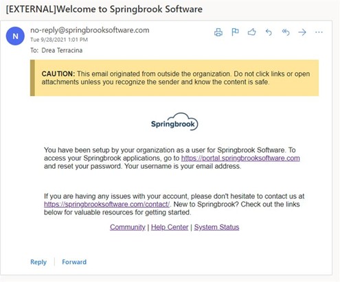 If you are a new Springbrook user you will receive an email with information about logging in. Check your inbox for a ‘Welcome to Springbrook’ email from [email protected]. If you don’t see the email, please check your junk folder.