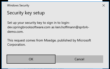 The following examples demonstrate setting up MFA with a Security Key. Setup of a security key will vary based on the key used and the browser you are using.