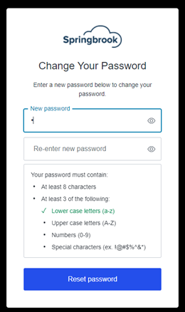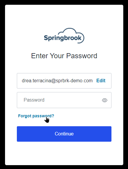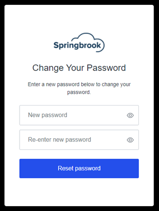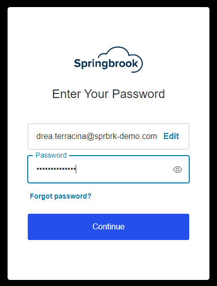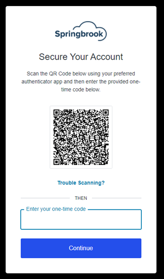 After your User has been created in Springbrook, you will need to establish your initial password and set up multi-factor authentication.