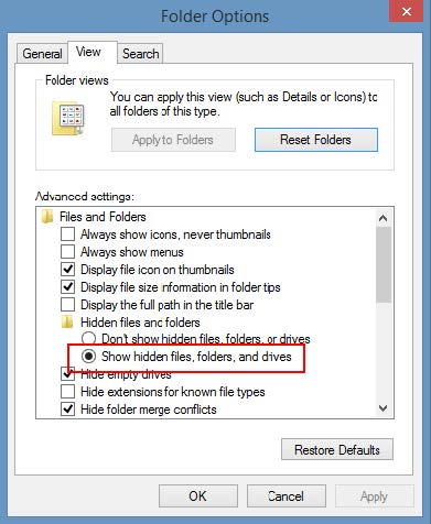 Open the Control Panel and ensure Show Hidden Files/Folders is enabled.